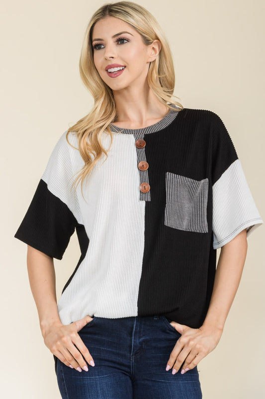 Celeste Full Size Ribbed Color Block Short Sleeve T-Shirt
