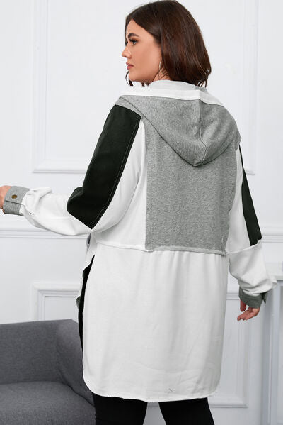 Elevate your wardrobe with our Plus Size Slit Color Block Half Snap Hoodie. Designed with a slit and pocketed features, this hoodie offers both functionality and style. With an opaque sheer and no stretch fabric, this hoodie provides a perfect balance of comfort and fashion.