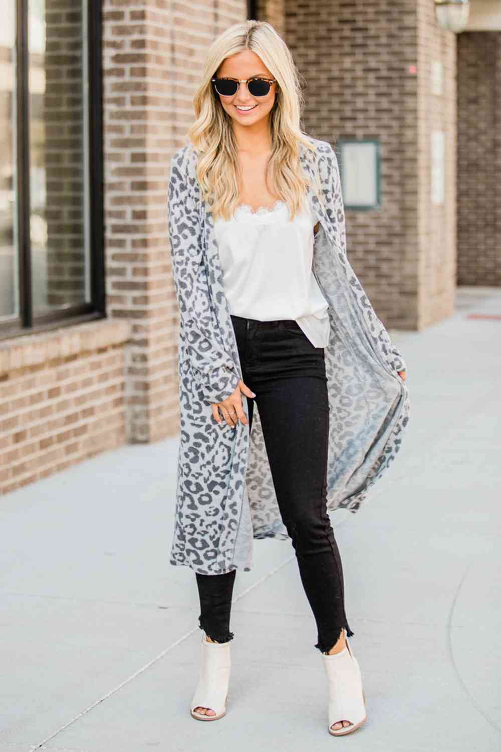 Upgrade your wardrobe with our Open Front Leopard Cardigan. This basic style is perfect for any occasion, with its normal thickness and unlined body providing comfort and versatility. Stay on trend with this must-have piece!