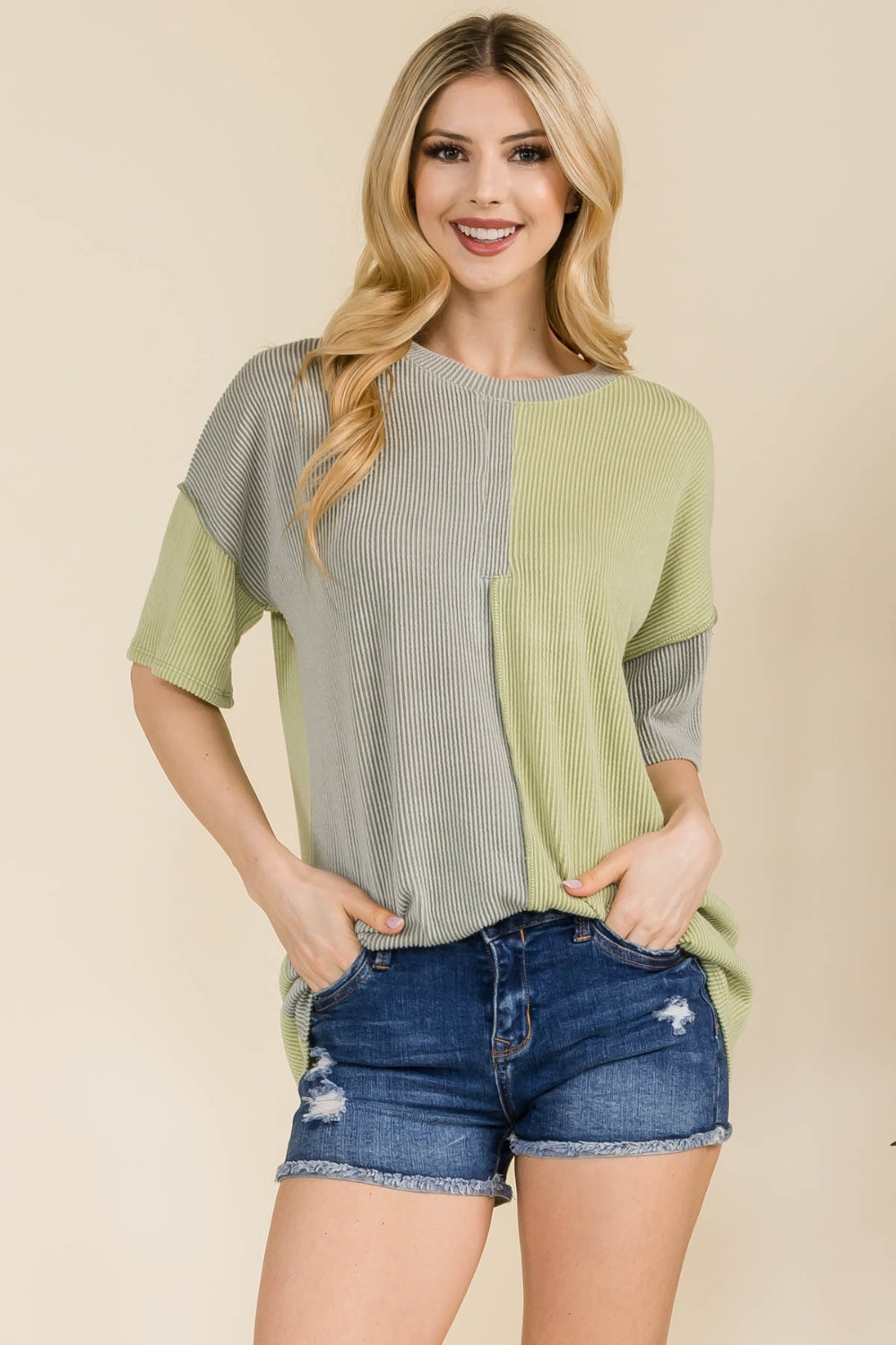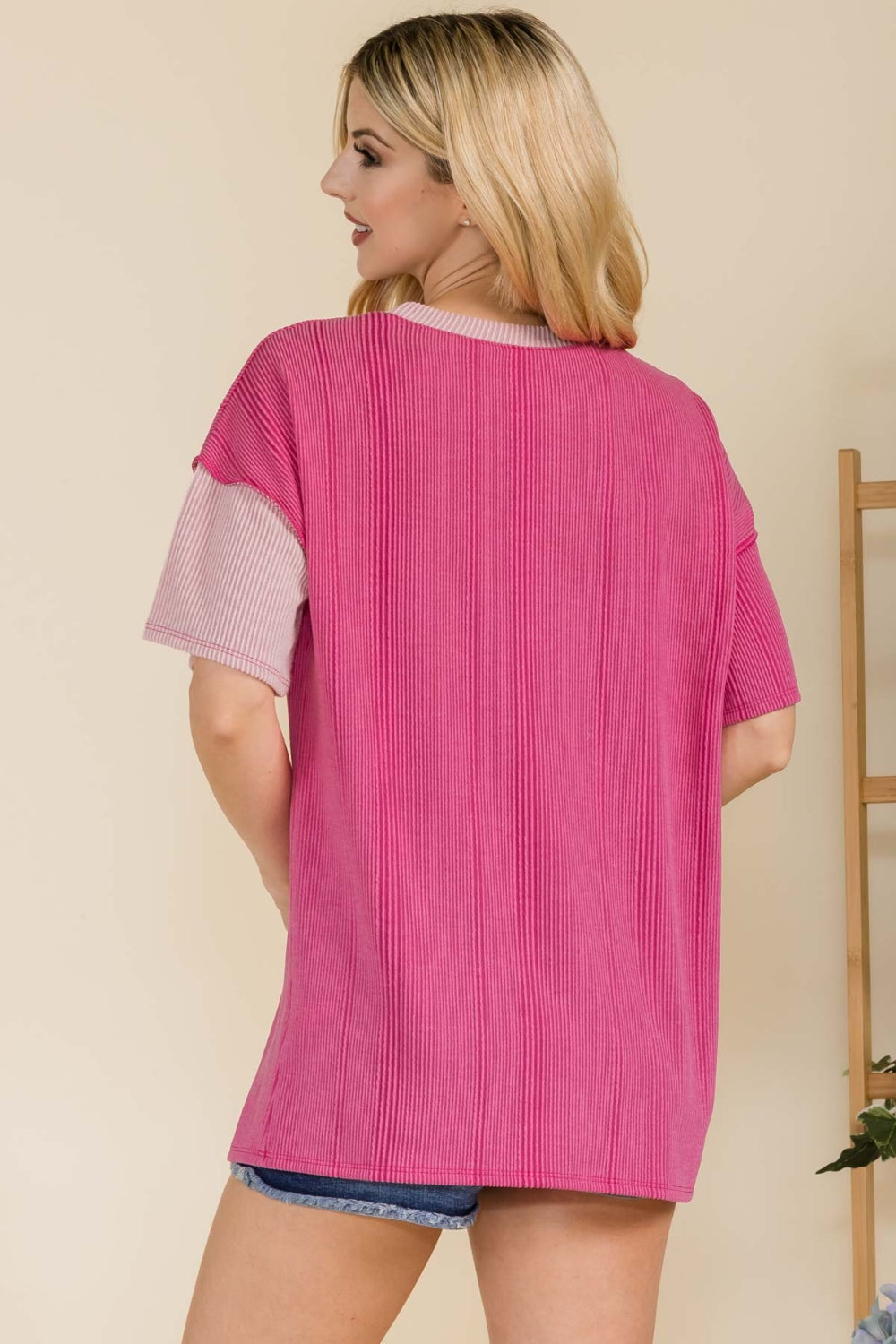 Celeste Full Size Ribbed Color Block Short Sleeve T-Shirt